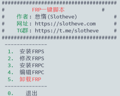 本文分享我自己写的FRP一键安装脚本, 同时支持 FRPS (服务端) 和 FRPC (客户端) 脚本 bash <(curl -fsSL https://raw.githubusercontent.com/Slotheve/Shells/main/frp.sh)
